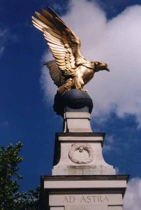 Visitors in search of the city as it was in wartime can find no better place to begin their quest than the Imperial War Museum. It is, perhaps, appropriate that a museum dedicated to the dissemination of knowledge concerning mankind’s worst folly should be housed in a former mental institution. The building of the Royal Bethlehem Hospital or "Bedlam" was completed in 1815. The displays focus not only on the horrors and heroics of the battlefield but also on effects of modern warfare upon society at large. The Blitz Experience,a reconstruction of an air raid shelter and bombed streetfront, stirs the consciousness with the terrible sights, sounds and smells of the city under attack. Our tour of the city’s memorials begins in Westminster Abbey, scene of English coronations since the time of William the Conqueror. Beneath the west window of the nave "rests the body of a British warrior, unknown by name or rank…They buried him among the kings because he had done good toward God and toward his house." The Tomb of the Unknown Warrior was dedicated on Armistice Day, 1920 by King George V. The carnage of the Great War took the lives of over one million British Empire troops. The memory of this horror was never far from a generation of Britons who cheered when Neville Chamberlain returned from Munich with a hallow promise of peace for their time. It would be a short peace. The Royal Air Force Chapel at the east end of the Abbey commemorates "the few" who kept Britain free. The chapel’s Battle of Britain window designed by Hugh Easton incorporates scenes from that decisive contest and crests of the 68 RAF fighter squadrons that participated in it.